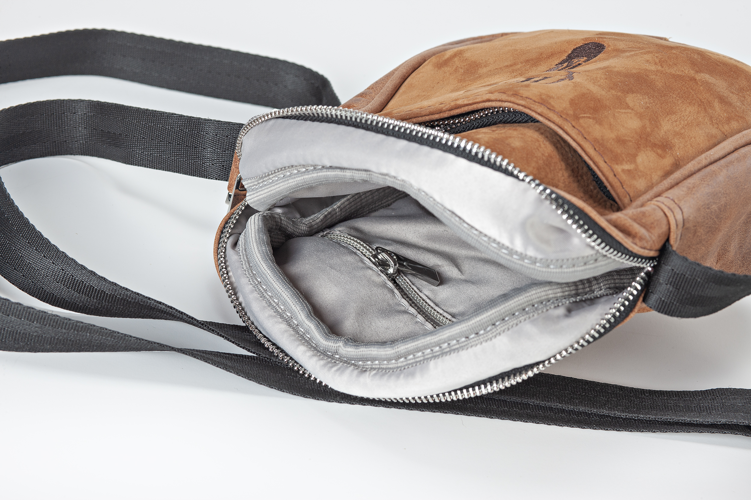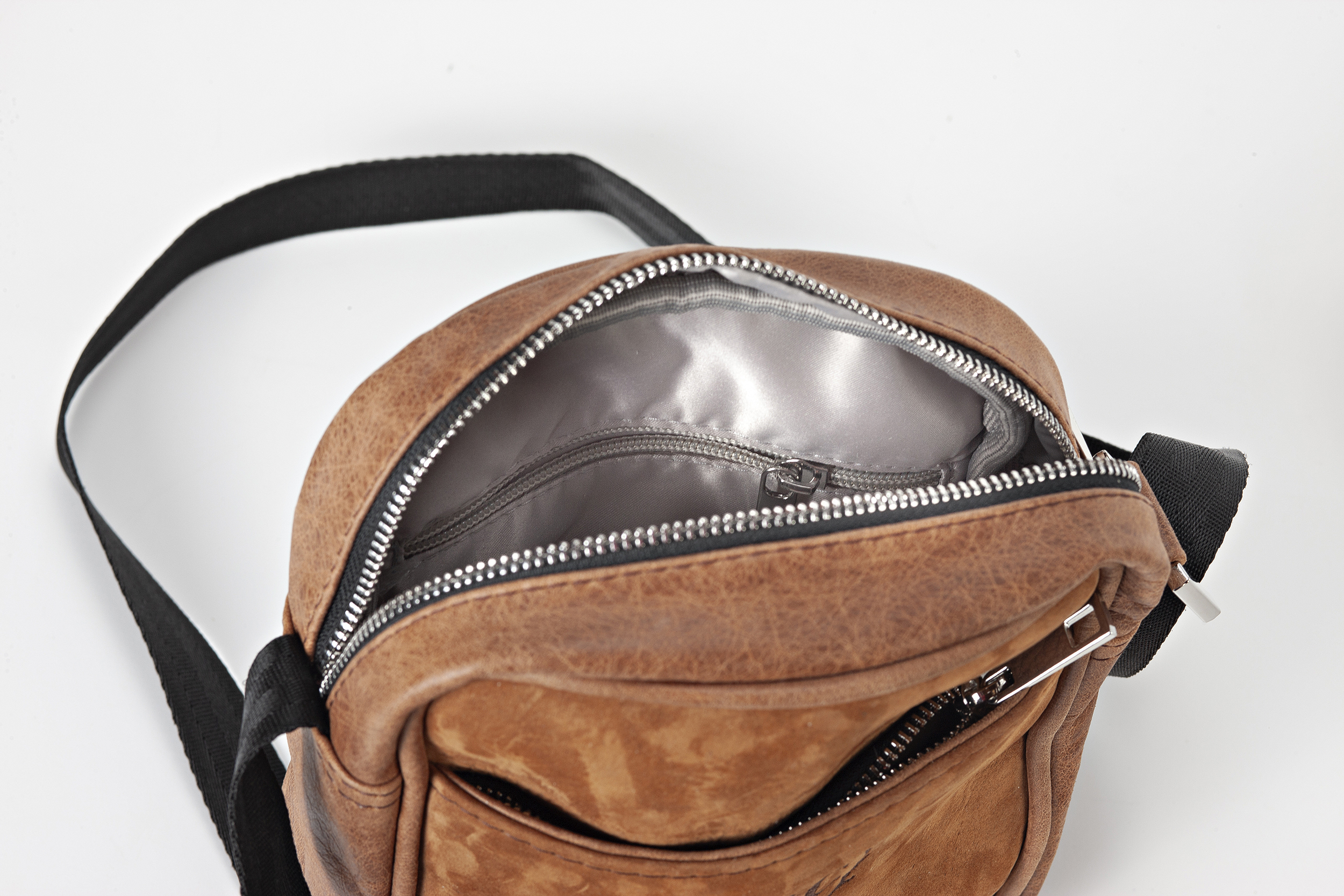 Posiada zamek komory głównej, oraz zamek kieszeni bocznej. Pasek na ramię, regulowany, nieodpinany.