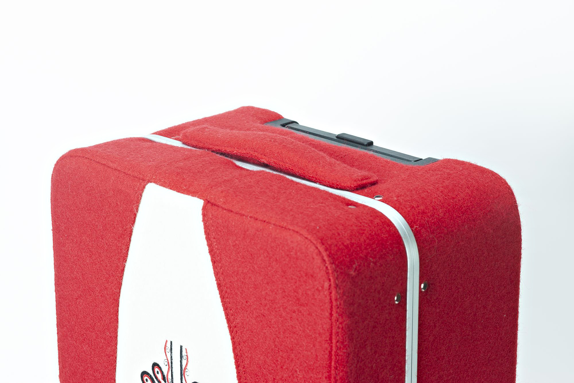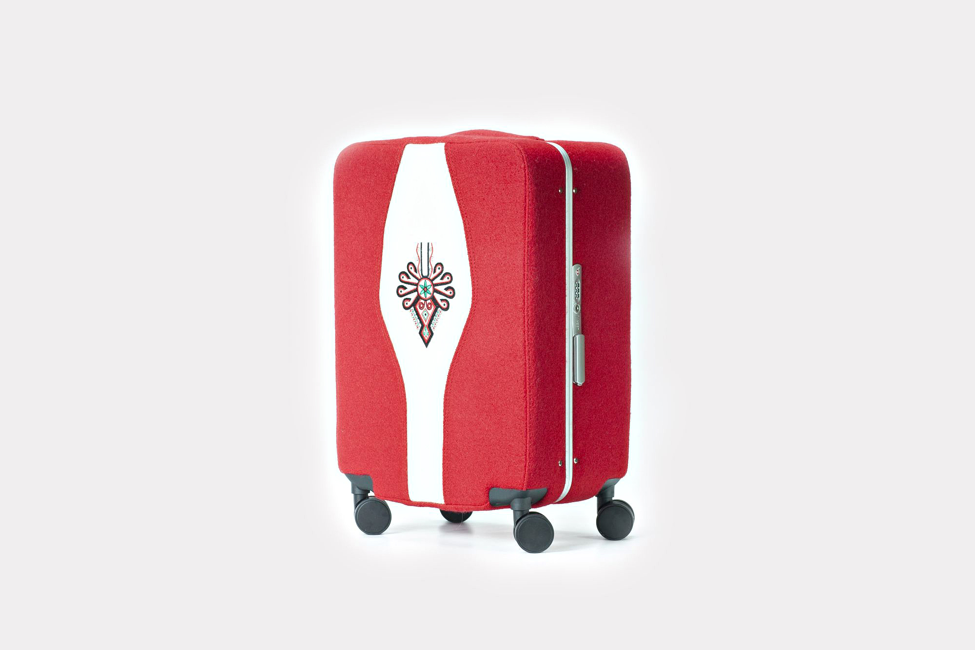 Czerwony koral to walizka klasyczna Savio z wielokolorowym i bogatym wzorniczo motywem parzenicy. Obłożona suknem czerwonym, środkiem przeszyta naturalnym suknem białym. Jest to model z naszej serii walizek z motywami regionalnymi.